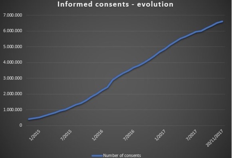Ce 20 novembre 2017 , 6.608.889 consentements étaient enregistrés annonce la ministre de la santé Maggie De Block dans un tweet.