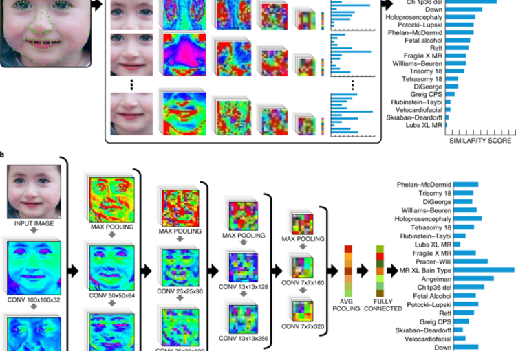 Pour « entrainer » cette intelligence artificielle non consciente (deep learning), les chercheurs ont recueilli plus de 17000 images représentant plus de 200 syndromes. Les réseaux neuronaux sont appliqués à l’image une fois que chaque photo est transformée pour normaliser les visages (grâce aux principales composantes de la face ou facial landmarks).