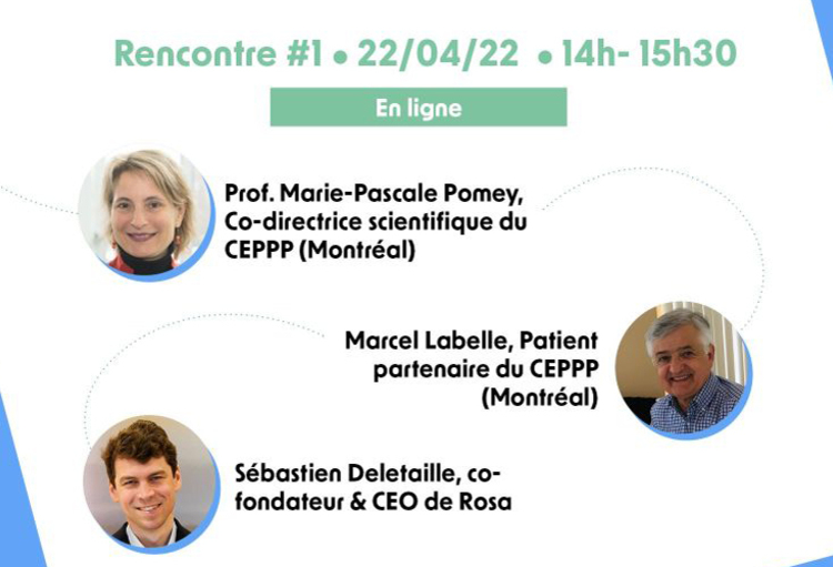 La première rencontre Teckno 2030 s'est tenue online ce 22 avril. Les participants ont ainsi pu voir et écouter Marie-Pascale Pomey, Marcel Labelle et Sébastien Deletaille parler de technologies en santé, et plus spécifiquement aborder les notions de besoins des patients, et comment la technologie peut y répondre ainsi que la notion de patients partenaires dans la recherche et de développement de technologies en santé. A voir où à revoir