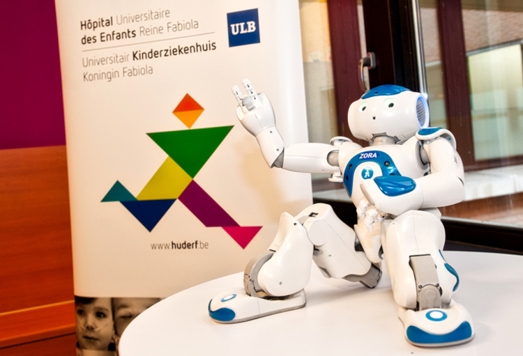 Le petit robot humanoïde Zora a récemment rejoint l'équipe des bénévoles pour améliorer le séjour des jeunes patients à l'HUDERF. Plusieurs missions lui ont déjà été attribuées.
