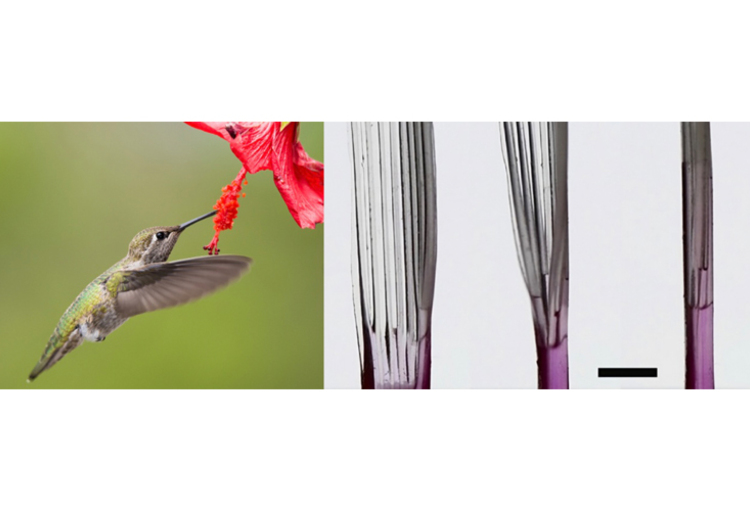 Le mécanisme s’inspire du mode d’alimentation des colibris : leurs langues sont dotées de lamelles qui se referment pour piéger le nectar. De la même manière, les rainures du dispositif se déforment spontanément en tubes au contact d’un liquide, permettant un prélèvement efficace.