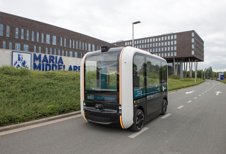 Olli 2.0 kan binnen een geo-afgebakende zone zelfstandig en dynamisch de route afleggen. Bovendien past hij die aan in functie van gedetecteerde obstakels en andere weggebruikers.