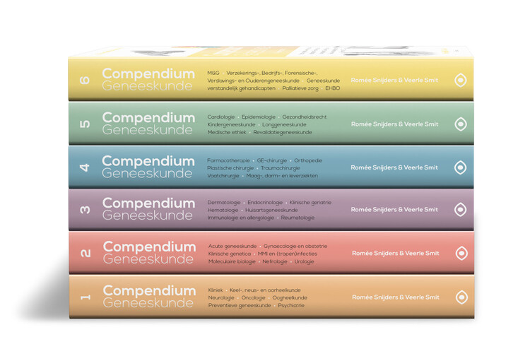 Tegenwoordig verdubbelt medische kennis al elke paar maanden. Het Compendium Geneeskunde (zes boeken) schept daarin overzicht. Met bijvoorbeeld nadrukkelijke aandacht voor inclusiviteit, onder meer in de dermatologie. Een belangrijke andere vernieuwing is een boek, volledig gewijd aan extramurale zorg. In totaal bespreekt het compendium nu 44 disciplines. Wie extra wil oefenen, kan dat via de gratis app, met ruim 10.000 oefenvragen over uiteenlopende zorgsituaties.