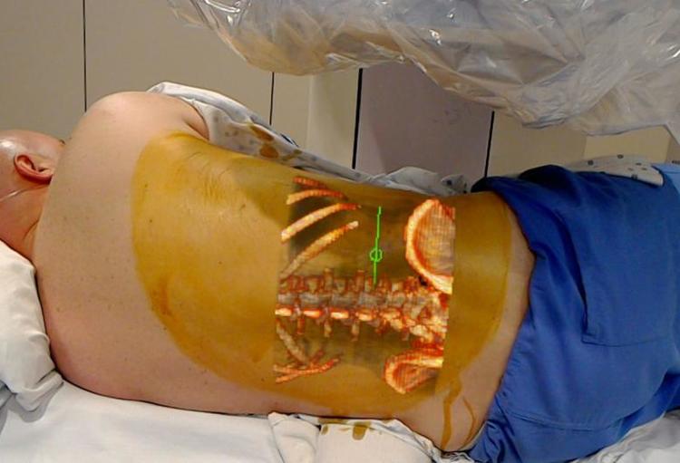 De technologie projecteert 2D-, 3D- en 4D-beelden van patiënten interactief door ze op het lichaam van de patiënt te zetten, meldt de firma Novarad.