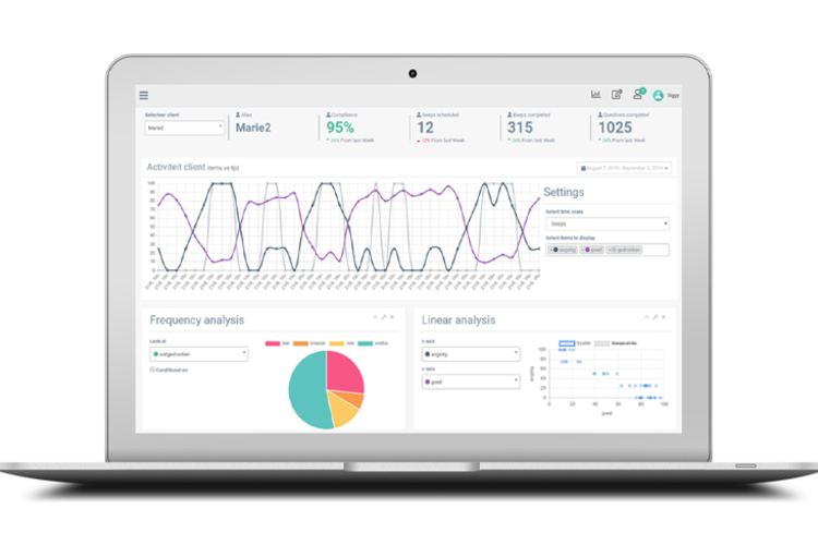 Door het online platform te raadplegen met alle informatie samengevat in tijdlijnen, grafieken en diagrammen, beschikken behandelaars over een feedbackinstrument om hun therapeutische doelstellingen te evalueren en bij te stellen en om essentiële informatie met hun patiënten te bespreken tijdens de therapiesessie.