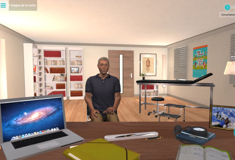 Franse onderzoekers van het Centre national de la recherche scientifique (CNRS) ontwikkelden een ‘serious game’ om artsen op te leiden voor consultaties. Bij die ersatz-consultatie moet de student interageren met een avatar met symptomen en een AI-systeem bij het aangeven van antwoorden.