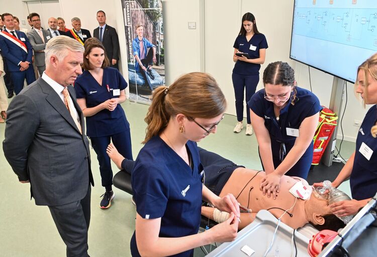 Koning Filip heeft woensdag een bezoek gebracht aan de Health Campus in Diepenbeek. Daar kreeg hij van onderzoekers en studenten van UHasselt en PXL een rondleiding en woonde hij demonstraties bij van verschillende nieuwe zorginnovaties. Hij sloot het bezoek af met een uitgebreid gesprek met studenten van beide hogeronderwijsinstellingen.