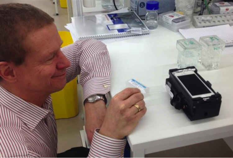 Door een relatief eenvoudige microscoop, bevestigd aan een gsm, konden onderzoekers kankergezwellen opsporen met dezelfde nauwkeurigheid als bij een traditionele kankerscreening. Deze kostenefficiënte technologie kan helpen om de genotypering van de biopsie van de kankerpatiënt buiten het laboratorium te verplaatsen naar gelijk waar het dringend nodig is.